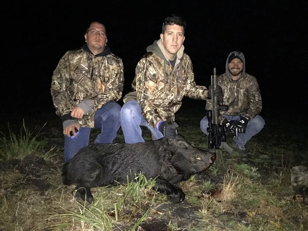 Join us for year-round fully guided wild hog hunts on our private ranch. Our hunts take place on private land where you can do a free range or a guaranteed opportunity hog hunt. The hunt is typically in the morning (5am- 10am), lunch and back out at 3pm until dark. Whether you're a first time hunter or a seasoned outdoorsman, we will guide you every step of the way to ensure a safe, successful, and unforgettable experience.