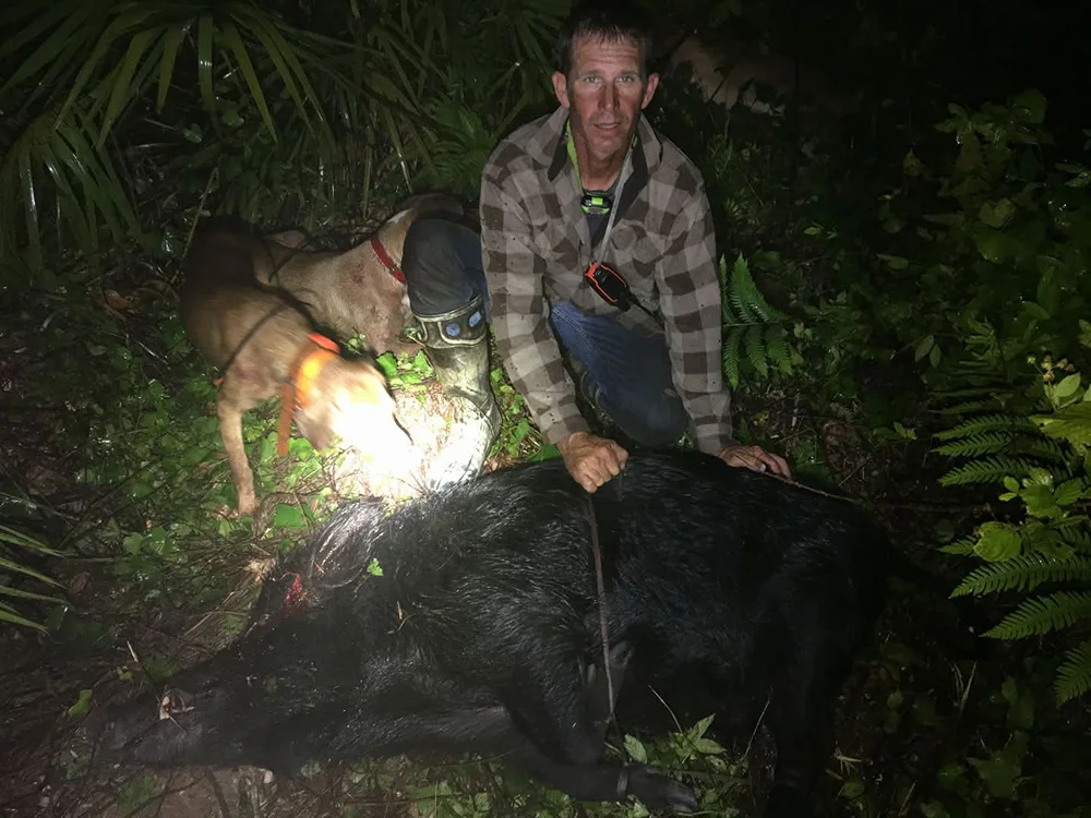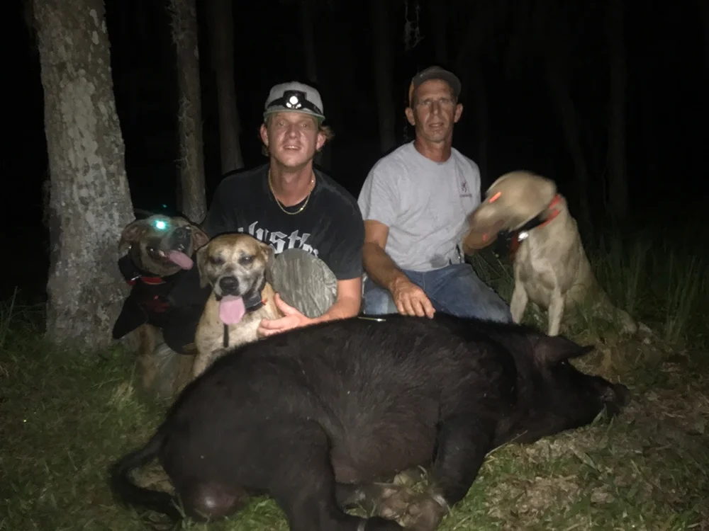Depending on the hunt (whether it’s the day or the nighttime) will determine which weapon of choice to harvest your hog. The swamp-buggy dog hunt is great for the family and groups of friends. This allows your friends or family to experience the hunt with you as you embark on your adventure, or hunt themselves if they like. This is a great way to bond with loved ones while catching an adrenaline rush and ultimately hunting and taking home some of the best meat around. Each hunter can take up to two hogs. This is one of our most sought after central Florida hog hunting experiences we offer!!