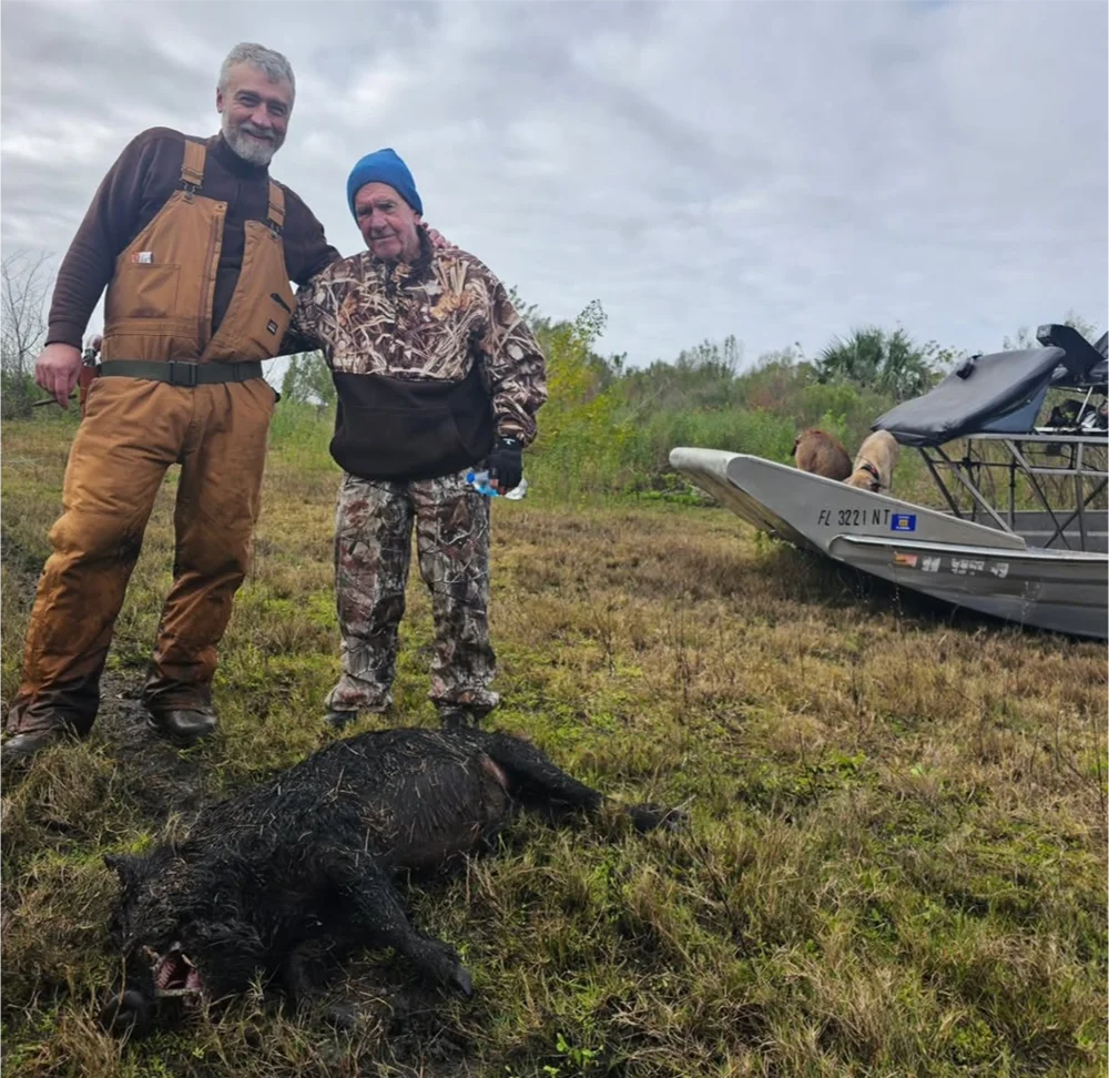 Our Florida hog hunting is available to you all year round. There is no age limit and no license required. Conveniently located in Central Florida only minutes from Orlando, Daytona, Kennedy Space Center and the beaches. We offer airboat dog hunts, swamp-buggy dog hunts and still hunts. If you would like your hog quartered, there is an extra $50 fee per hog. No charge to drop off your hog(s) to our local processor who you would work with directly.