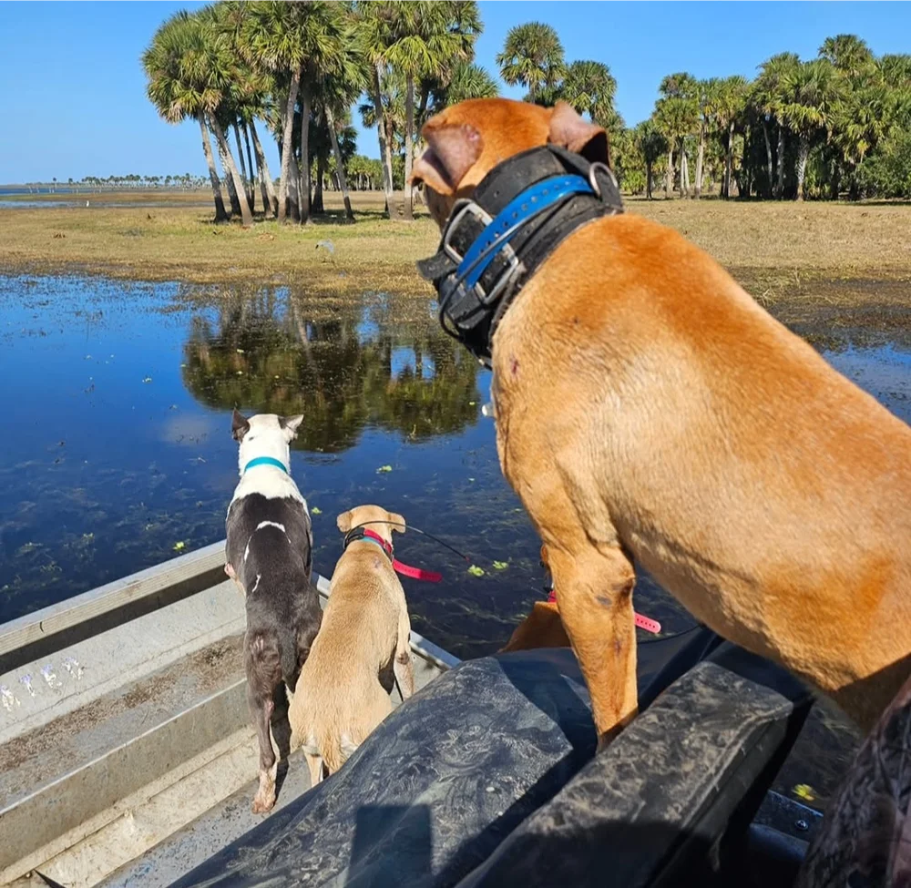 A boar hunt off the airboat is for the adrenaline seeker and is going to give you plenty of stories to go home and tell your buddies about. On our central Florida airboat hog hunting adventures with the dogs you will be riding on a 800 horse power airboat, gliding through the marshes and swamps as well as running dry ground through the woods. If you think that sounds amazing, watch our highly trained and skilled dogs surf the front of the boat, winding and searching for fresh hog scent. Once they get on a good fresh scent, the hunt is officially on! They may just bay one up right in front of the boat, or maybe go 500 yards where we have to track them down on foot with our GPS tracking systems. You will go absolutely crazy for Orlando hog hunting and will most likely find yourself craving more.